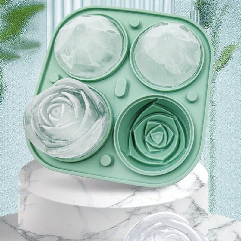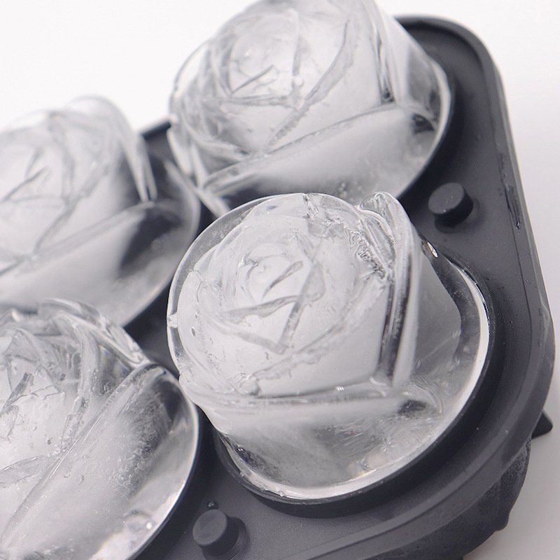 Home > 1pc Rose Ice Cube Mold Tray; Silicone 4-Cell Ice Cube Mold For Whiskey Cocktail Refrigerator Kitchen Utensils