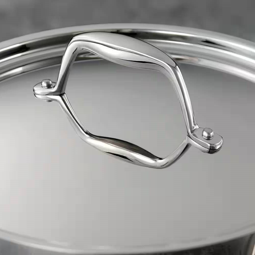 • Tri-Ply Clad Construction: 18/1 0 Stainless Steel, Aluminum core, Magnetic stainless steel (Induction-ready)