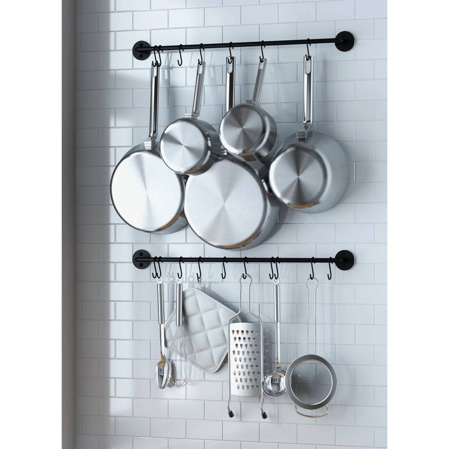 Set of 2 - Black Metal Wall Mounted Pot Rack with 20 Hanging Hooks Set of 2 - Black Metal Wall Mounted Pot Rack with 20 Hanging Hooks Set of 2 - Black Metal Wall Mounted Pot Rack with 20 Hanging Hooks Set of 2 - Black Metal Wall Mounted Pot Rack with 20 Hanging Hooks Set of 2 - Black Metal Wall Mounted Pot Rack with 20 Hanging Hooks