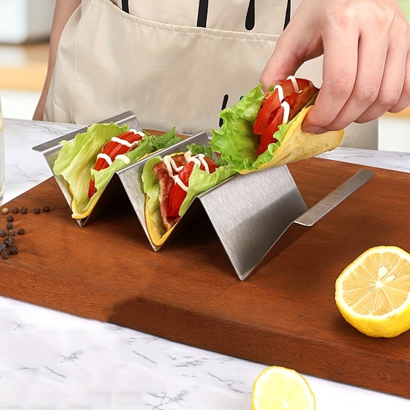 Home > 2pcs Taco Holders; Stainless Steel Taco Bracket Tray; Mexican Tortilla Tray; Suitable For Baking; Dishwasher And Barbecue; Kitchen Accessories