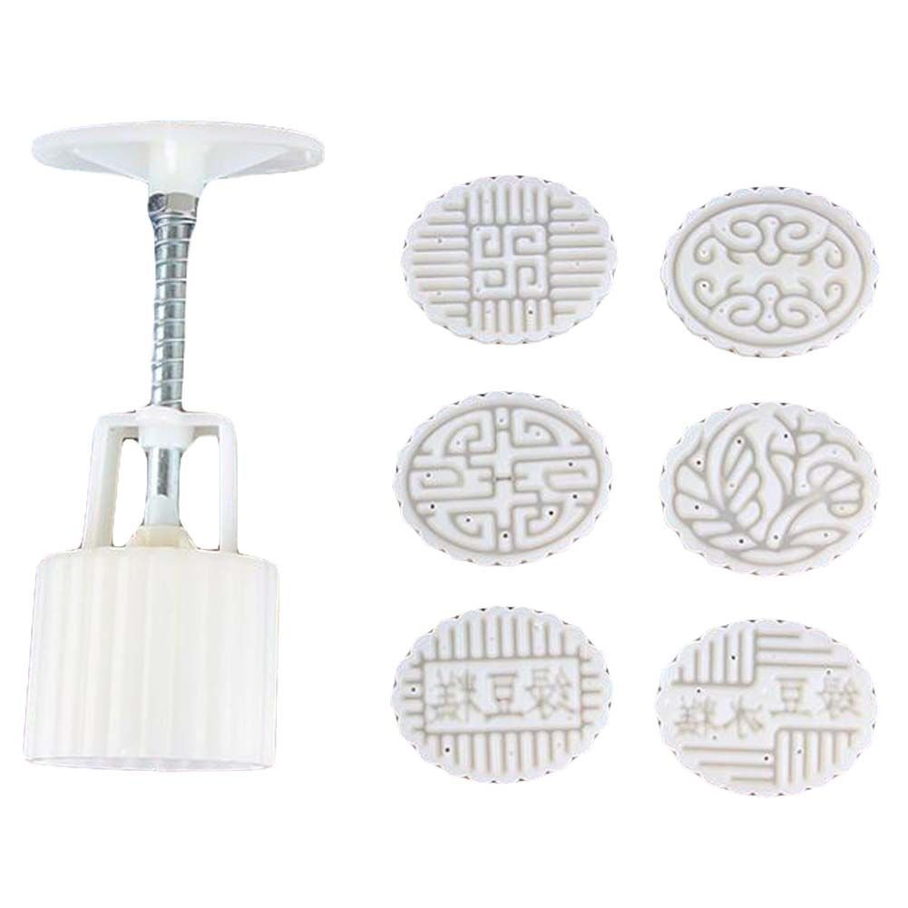6 Stamps Bean Paste Cake Ellipse Baking Molds Plastic Moon Cake Mold Baking Tools Cake Mold Cookie Mold 45G